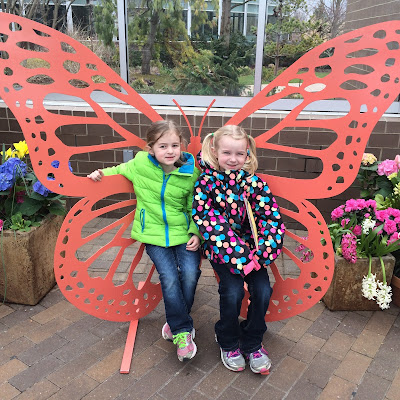 I felt like 95% of my local friends were gone for the first week of April (or at least the ones who were sure posted a lot about it on Facebook...). I was looking forward to taking the girls to the zoo, working in the garden, etc., but of course it ended up being a rainy, 40-50 degree week. I did take them to see the butterflies at Meijer Gardens one morning, and am soooo glad we got there when it opened at 10am. By the time we left around noon, the ticket line was around the corner and out the door! Apparently everyone else in the greater-Grand-Rapids area had the same idea.